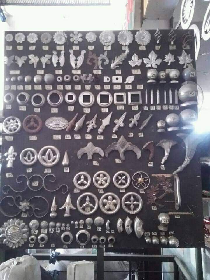 ornamen pagar besi dengan bahan besi plat yang diproduksi pake mesin khusus, aneka kembangan untuk perlengkapan pagar besi anda agar terlihat mewah & elegan.